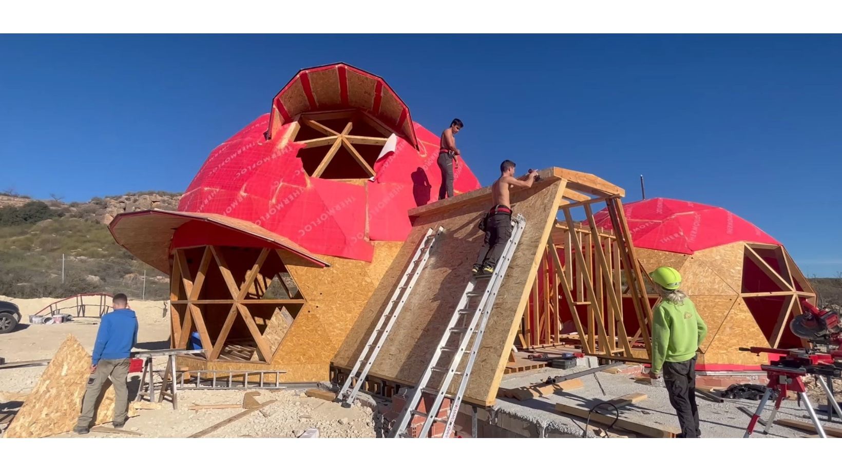 Proyecto autosostenible formado por una Vivienda geodésica formada por dos cupulas adosadas.183m².